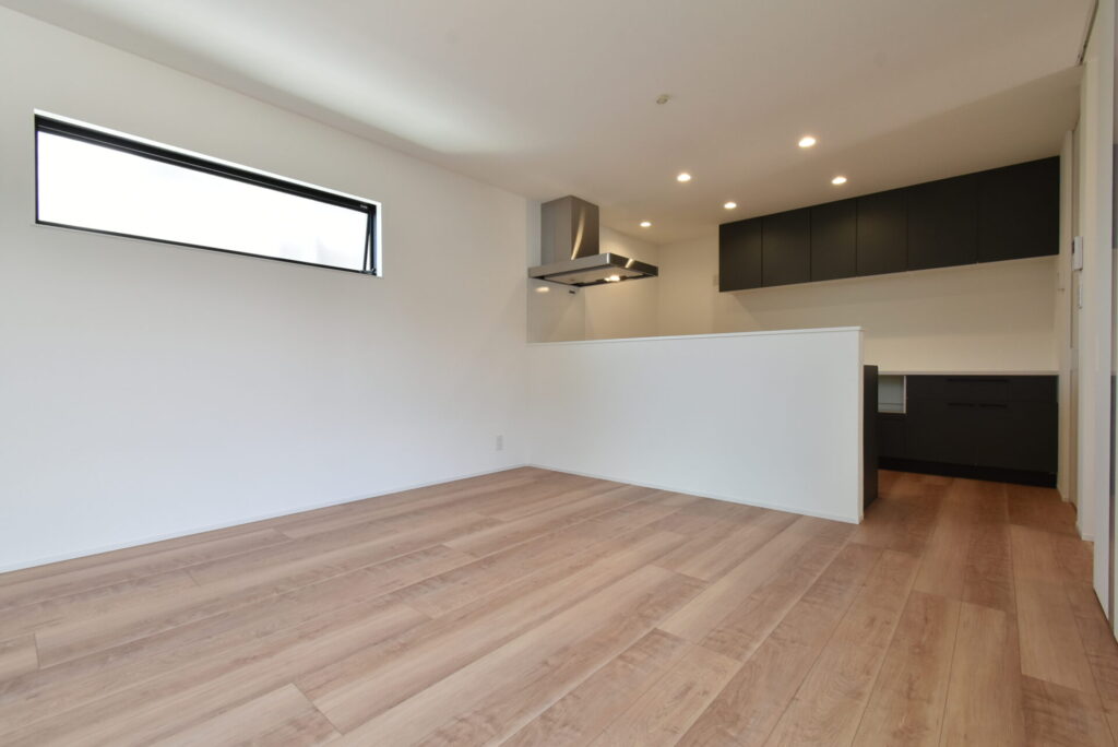 シンプルかつモダンな雰囲気で、ゆったりと落ち着いて過ごせそうなLDK。窓から流れ込むやわらかな風が心地よい空間です。