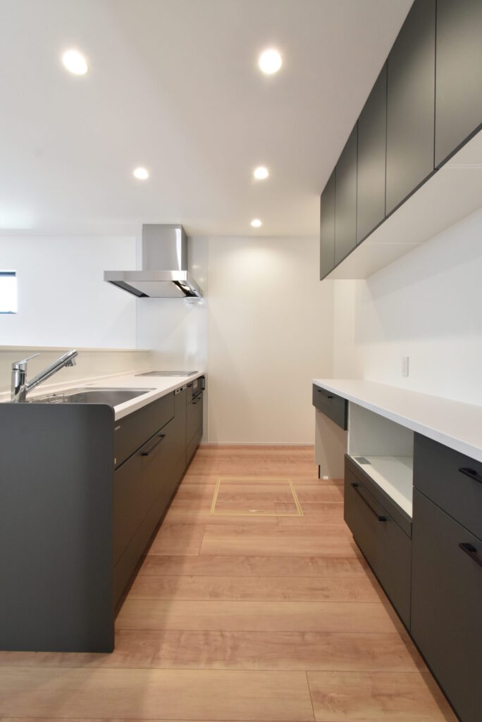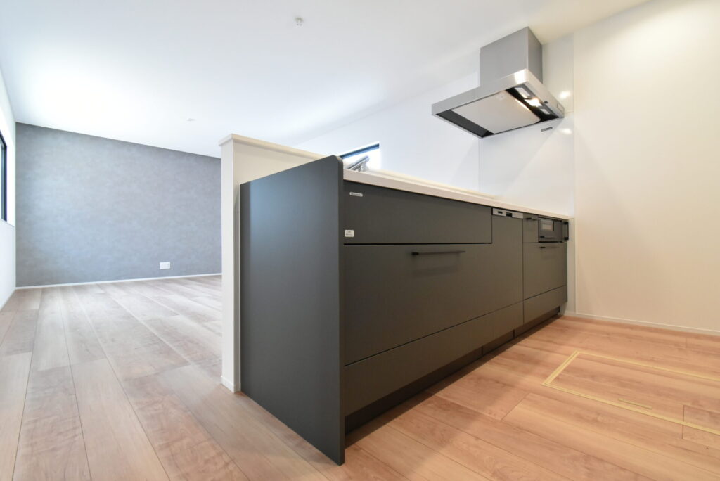 キッチンはマットブラックなので、指紋などの汚れが目立ちにくく◎