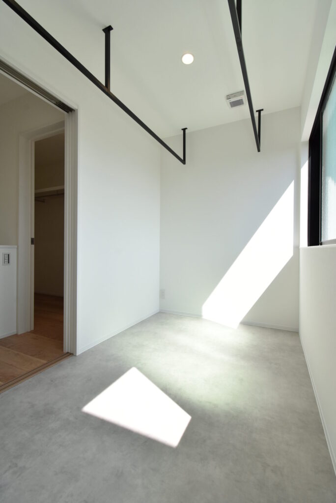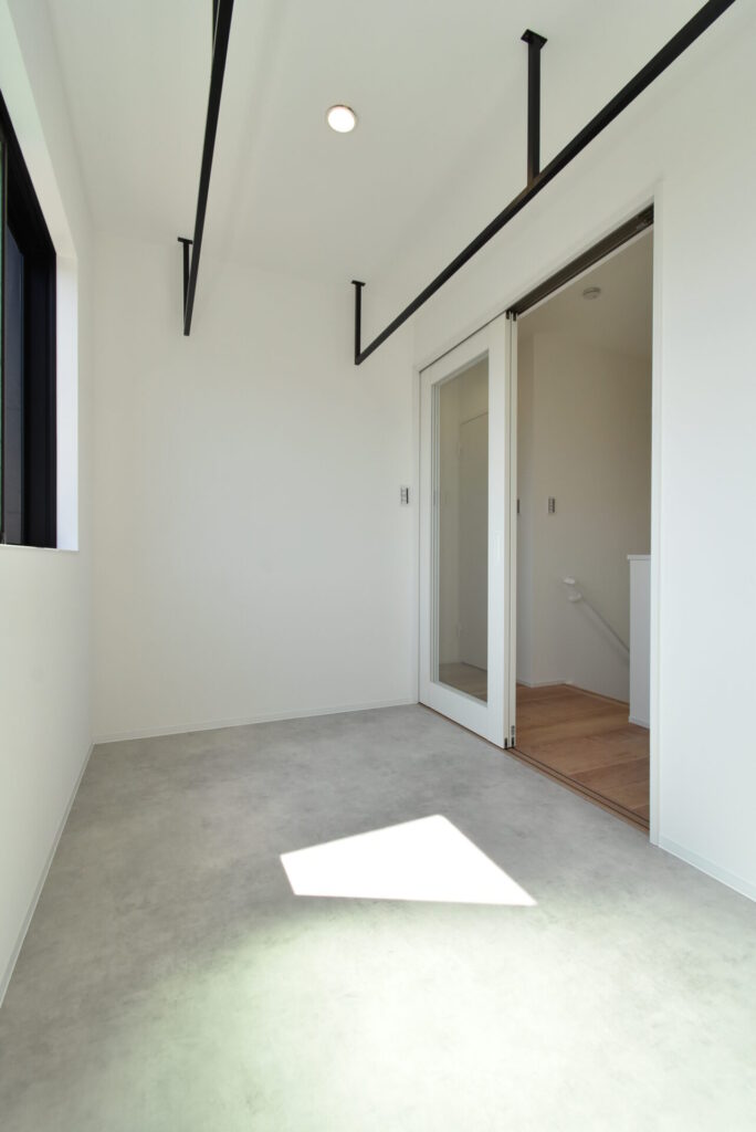 階段を上がってすぐの場所にサンルームがあると、洗濯家事の移動もスムーズにできます。寝室のクローゼットもすぐそこなので、洋服の片付けもあっという間にできますよ。