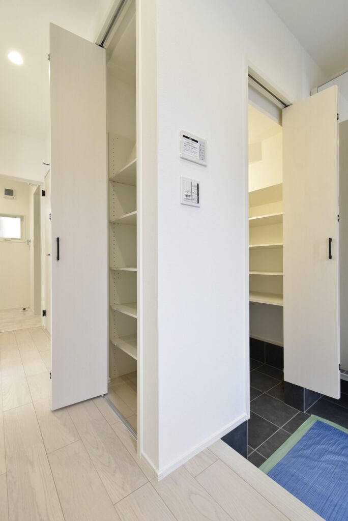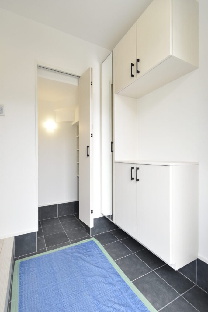 玄関まわりは、カバンや帽子・ハンカチにマスクなど、細々したものが散らかりやすいため、収納場があると助かりますね。