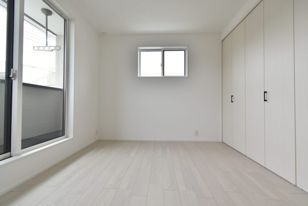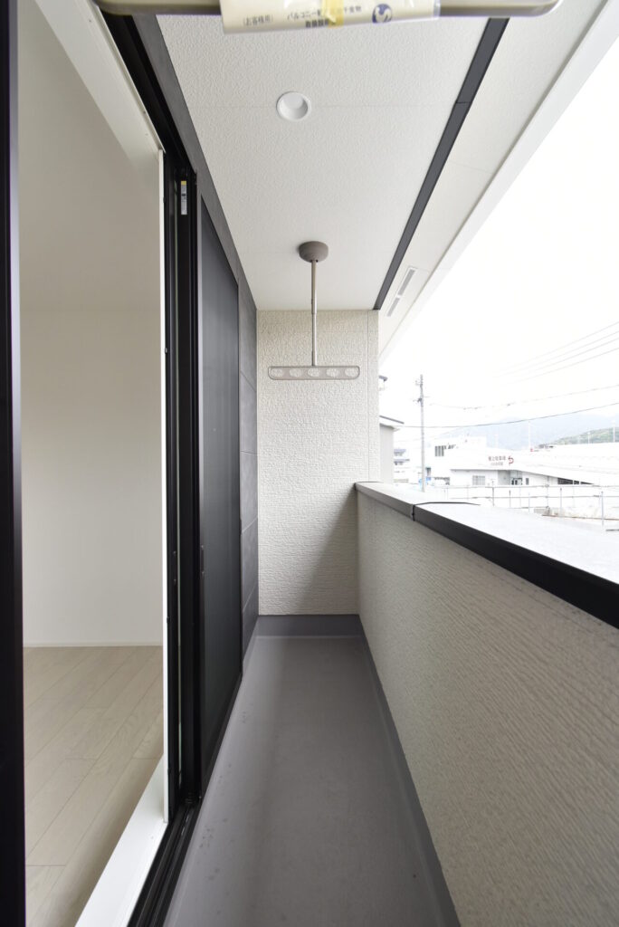 夫婦の衣類をマルっと収めやすく、モノの管理がしやすい広さです。ベランダを見てみましょう。