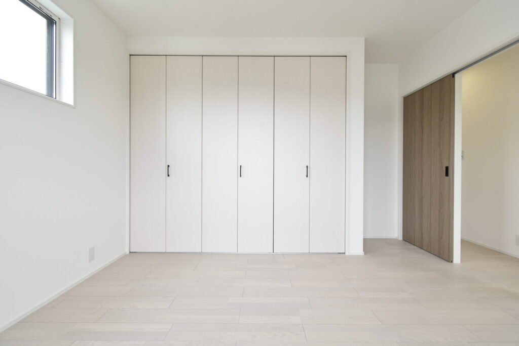 壁一面のクローゼット。